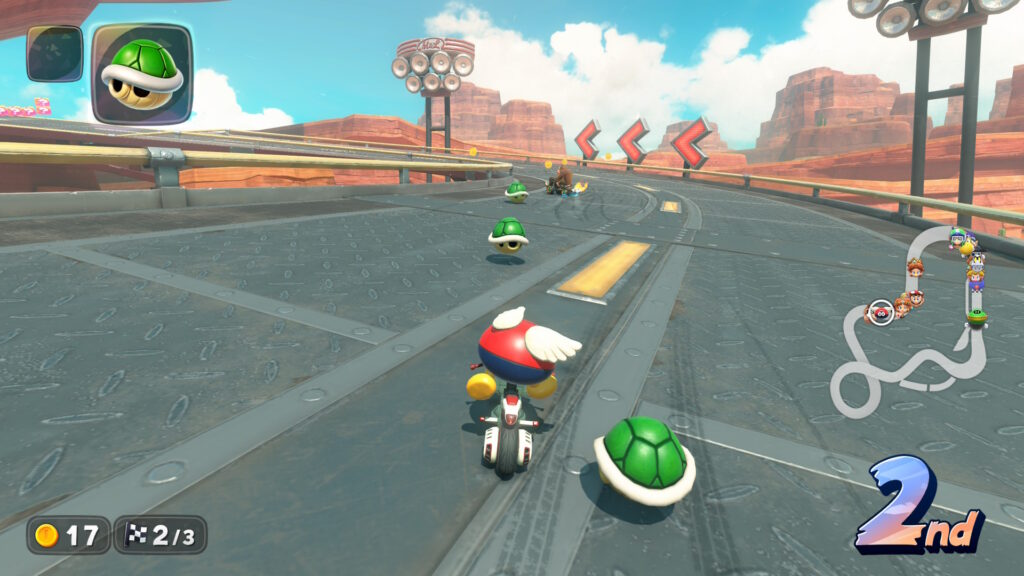 マリオカートワールドではあまり有利ではないですが、状況によってはこの戦術に切り替えた方が良い場合もあるので、場面に応じて使い分けましょう。