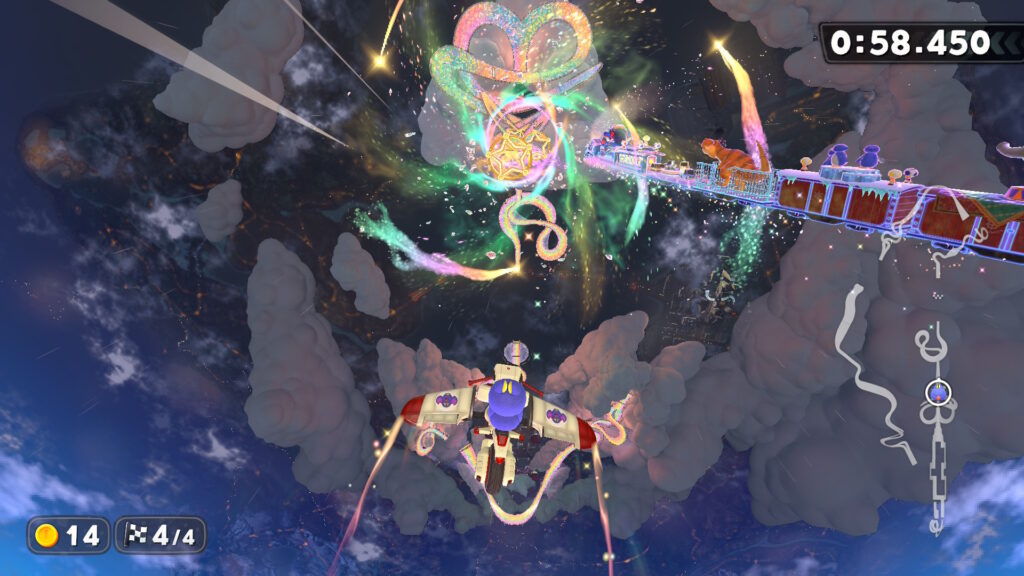 また、スティックを横に倒した後(弾く感じでOK)Rボタン(ZRボタン)を押すことで、レールからレールへ飛び移ることができます。