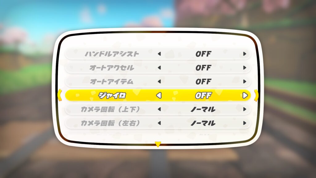 マリオカートワールドではジャイロ機能の初期設定はOFFになっています。