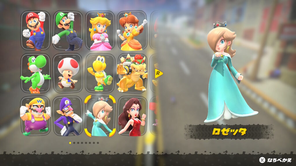 マリオカートワールドのロゼッタは、重量級キャラで、スピードが高く、加速と曲がりやすさも重量級の中では高くなっています。