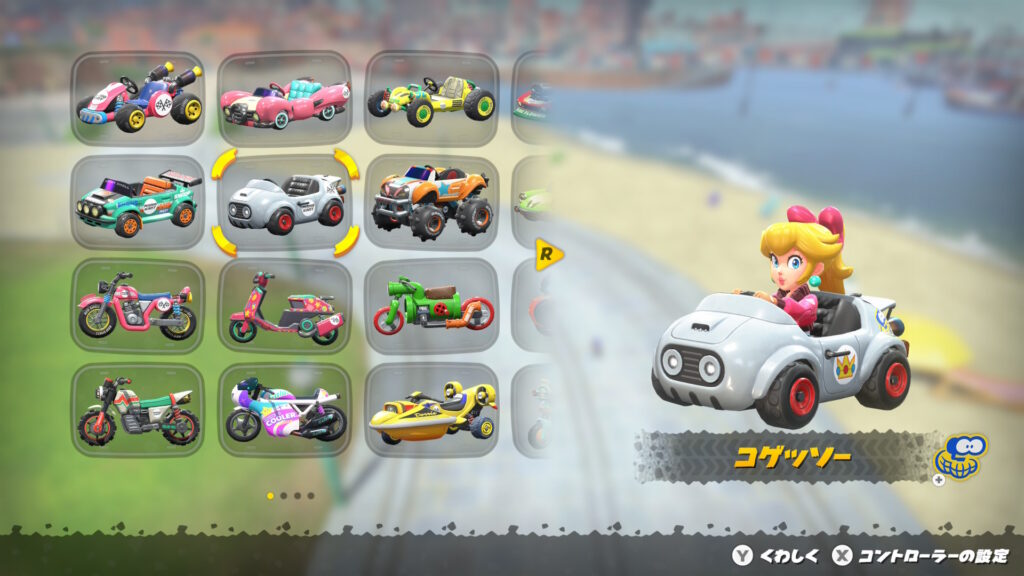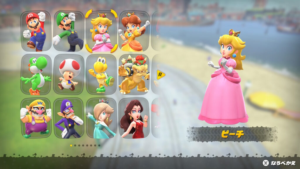 マリオカートワールドのピーチは初期から使うことができます。
