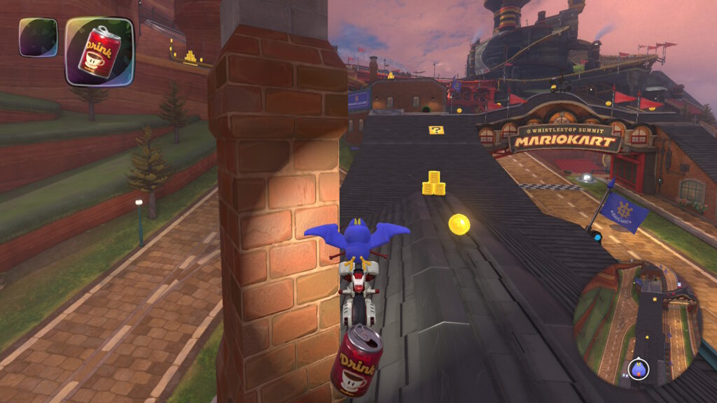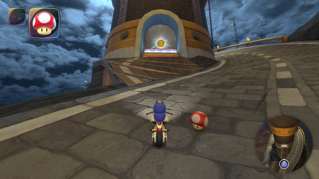 ゴール前の最終コーナーでは加速アイテムを使ってショートカットができます。