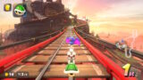 マリオカートワールドのピーチスタジアムはピーチ城を昇ってまた下っていくというコース設計になっています。ピーチビーチは、ピーチ城の周りのビーチや海を走るコースになっています。